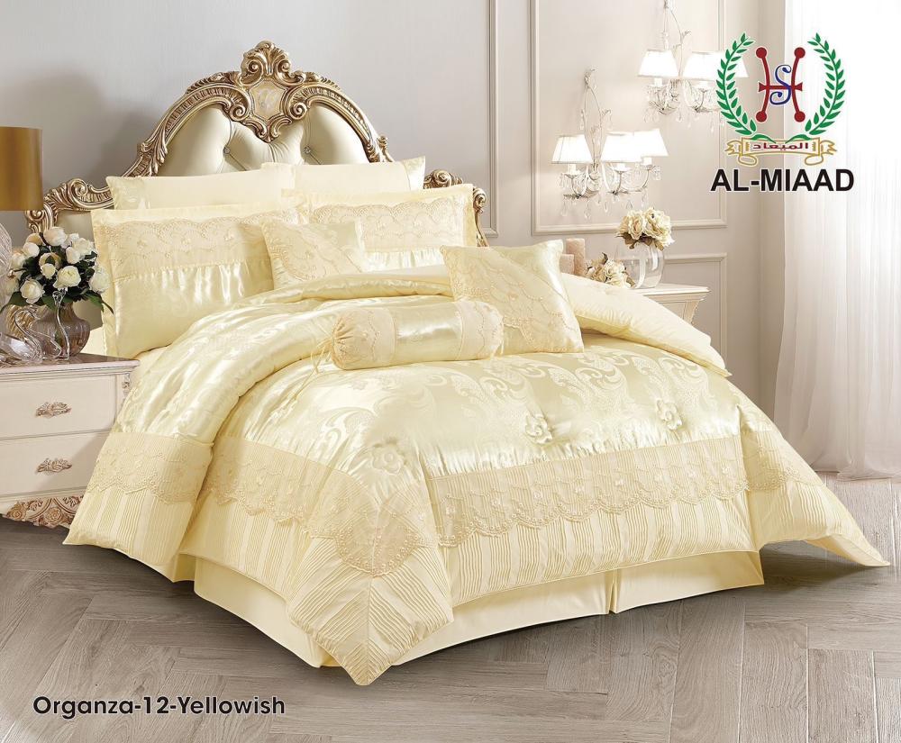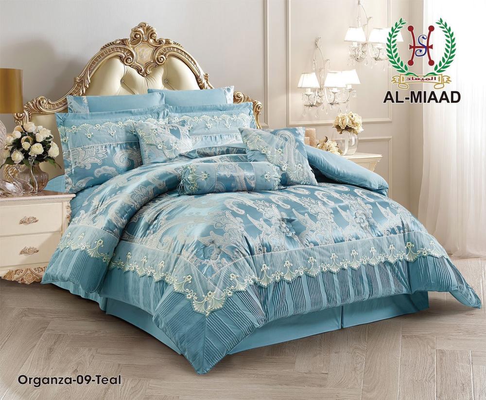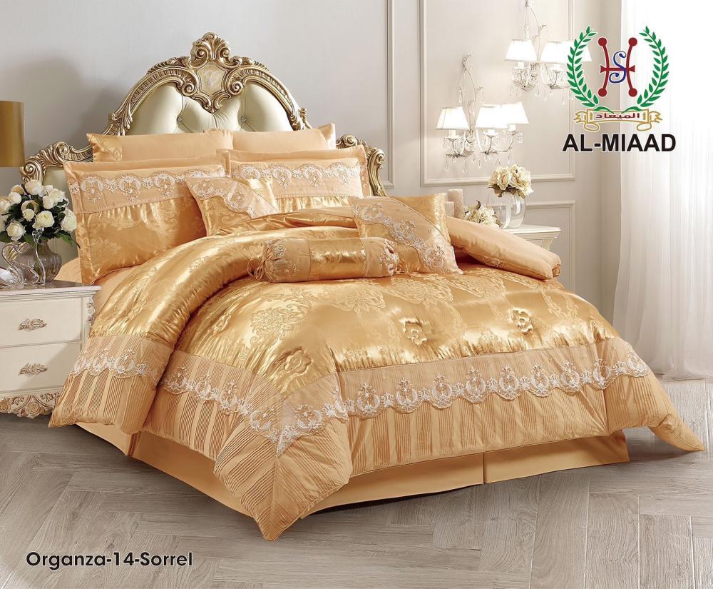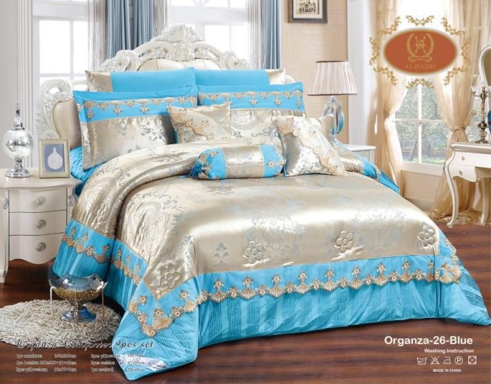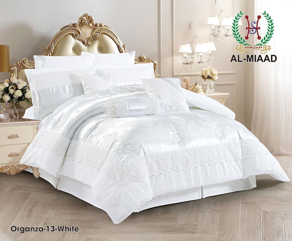 مفرش 9 قطعه جاكار عرايسي اوركنزا Organza راقي وفخم جدا متوفر نفرين فقط ....١_ لحاف مقاس ٢٤٠/٢٦٠ ١_ شرشف مبطن مطاط كرنيش مقاس ٢٠٠/٢٠٠٤_ كيس مخده كبير ٢_ مخده مربع .١_ مخدة حلاوة