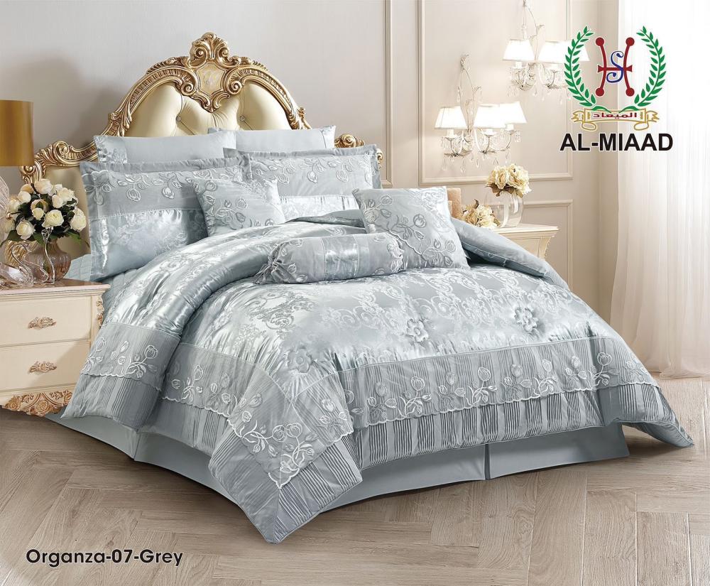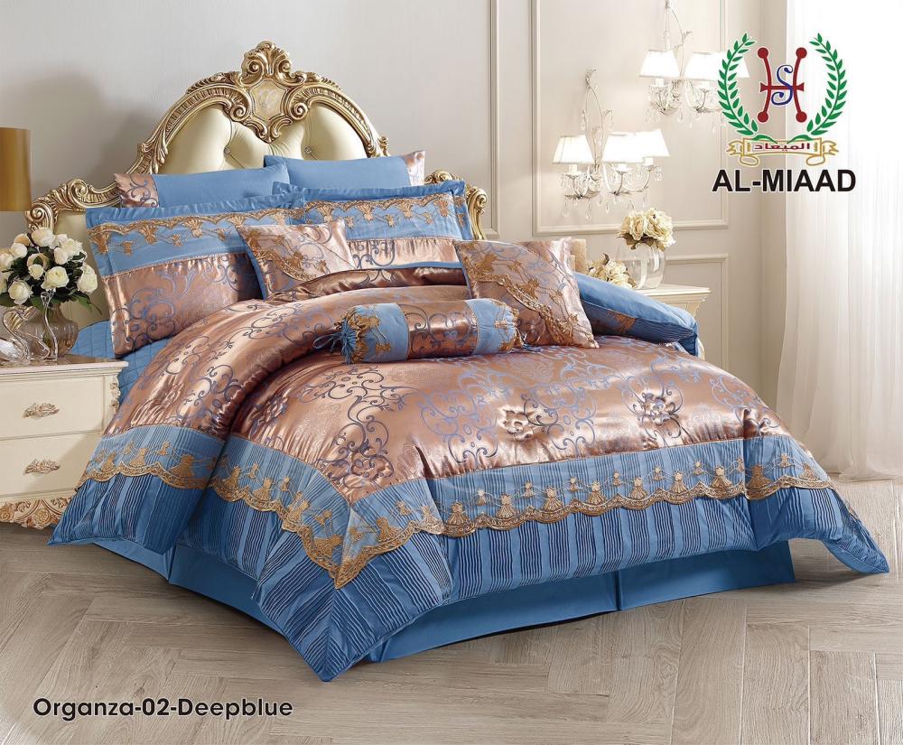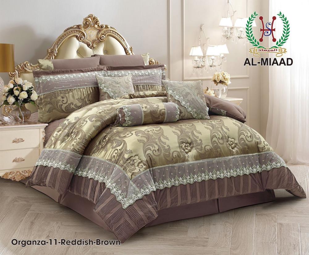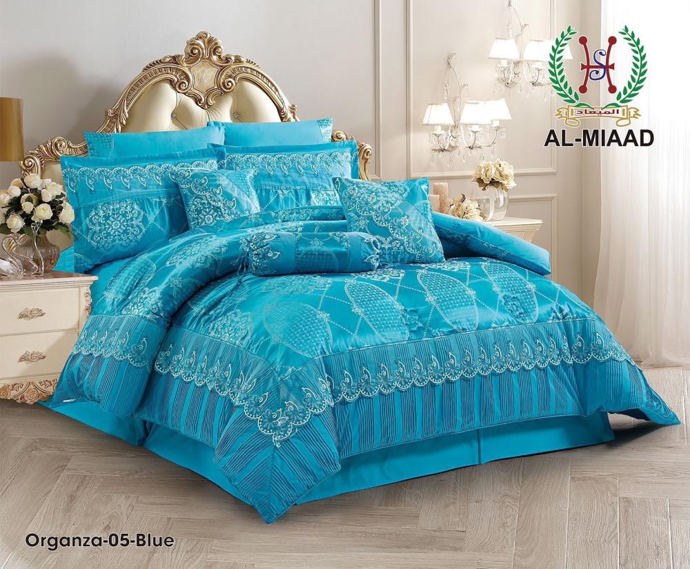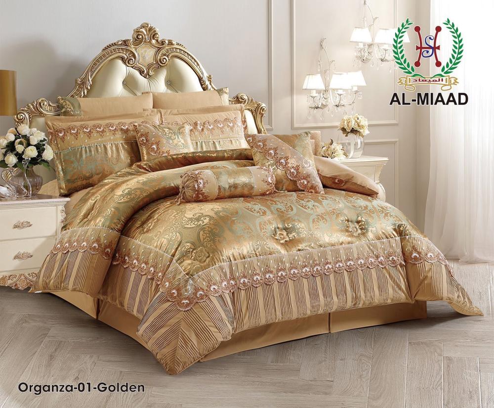 مفرش 9 قطعه جاكار عرايسي اوركنزا Organza راقي وفخم جدا متوفر نفرين فقط ....١_ لحاف مقاس ٢٤٠/٢٦٠ ١_ شرشف مبطن مطاط كرنيش مقاس ٢٠٠/٢٠٠٤_ كيس مخده كبير ٢_ مخده مربع .١_ مخدة حلاوة