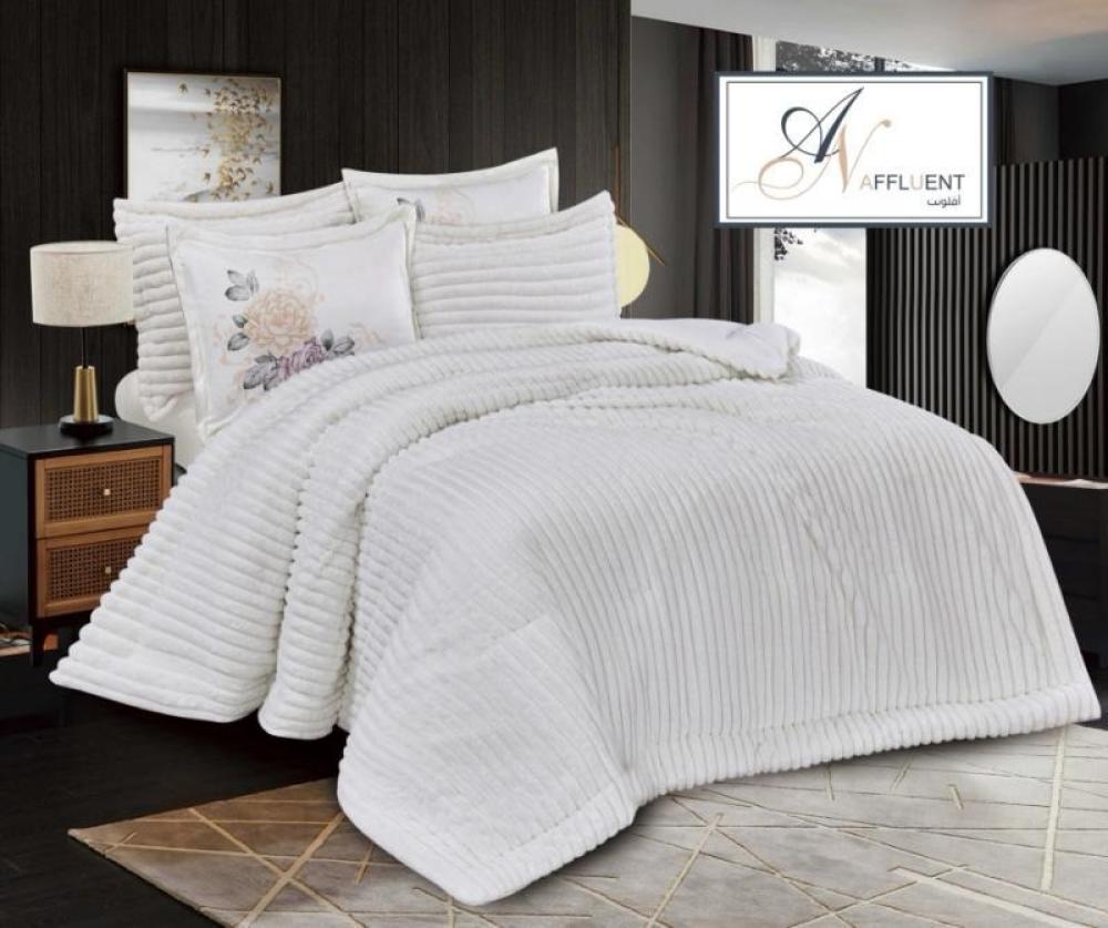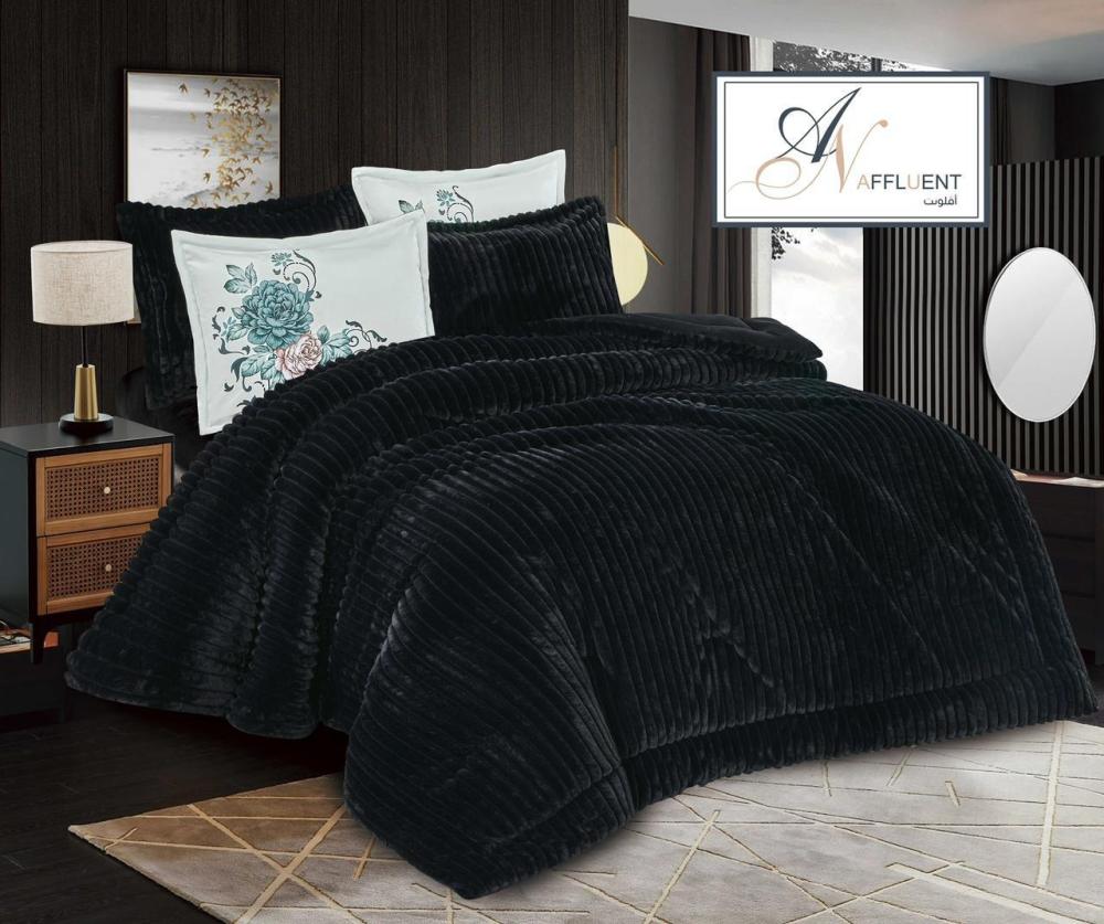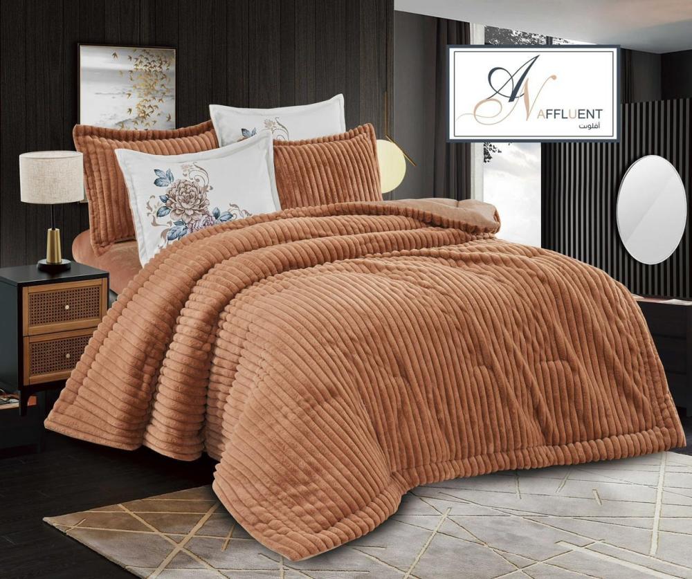 مفرش نفرين بوجهين وجه مخمل ساده ووجه فرو مكون من 6 قطع 1 لحاف 240*260سم1 شرشف مخمل 200*200سم 4 تلبيس مخده 50*70سم