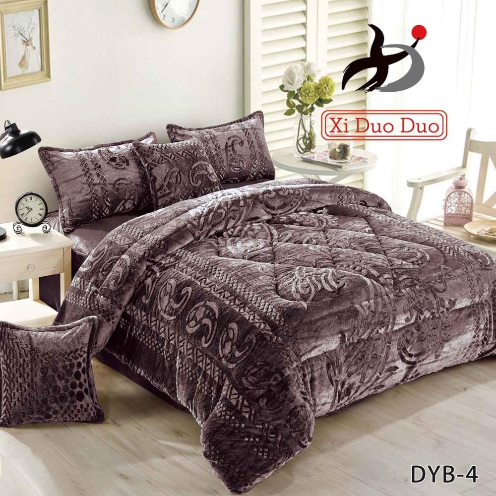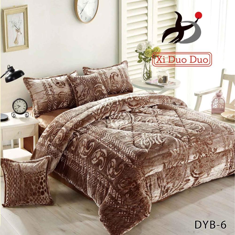 مفرش نفرين شتوي وجه مخمل وجه فرو حشوه وسط 6 قطع / طياف