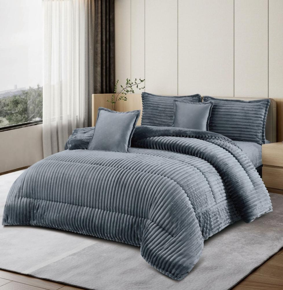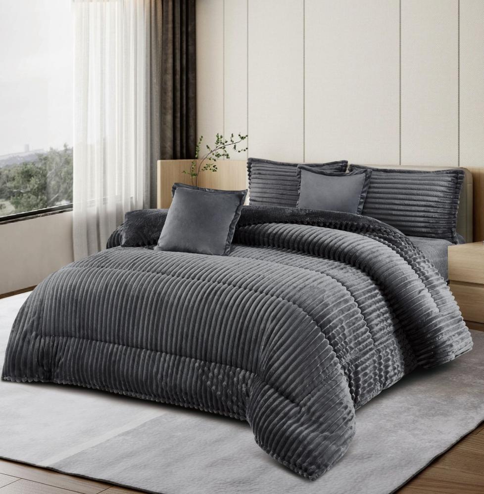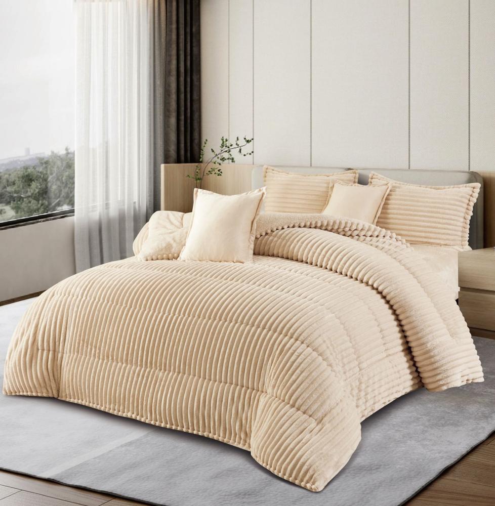 لحاف شتوي نفر ونص حشوه وسط مخمل وداخل فرو 4 قطع / سورام